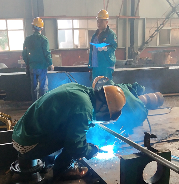高溫下,鉗工們工作起來(lái)更加辛苦。電焊時(shí)火花飛濺,雖然隔著焊帽,但隔不住熱浪,熏得滿臉發(fā)燙,豆大的汗珠從臉上滑落,汗水濕透了衣衫。風(fēng)扇把熱空氣吹成了熱風(fēng),顯得更加燥熱。即便是這樣,他們依然沒(méi)有停止手上的工作,沒(méi)有絲毫懈怠。