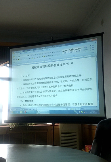 該系統(tǒng)計劃預(yù)計九月份上線并投入使用。為確保目前錄入階段物料編碼錄入的及時性、準(zhǔn)確性和完整性,會議對各部門進行了分工,要求按照自動化公司編碼規(guī)則整理各部門存貨編碼,按照統(tǒng)一格式進行電子表格填寫及驗證。